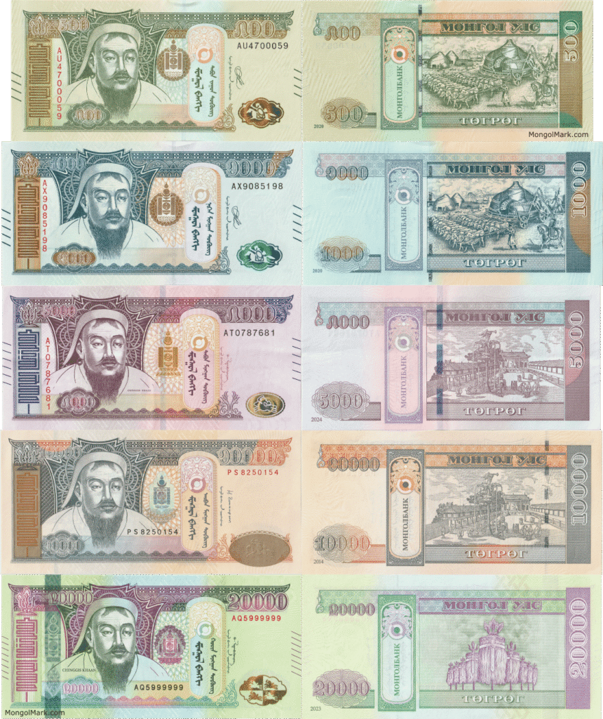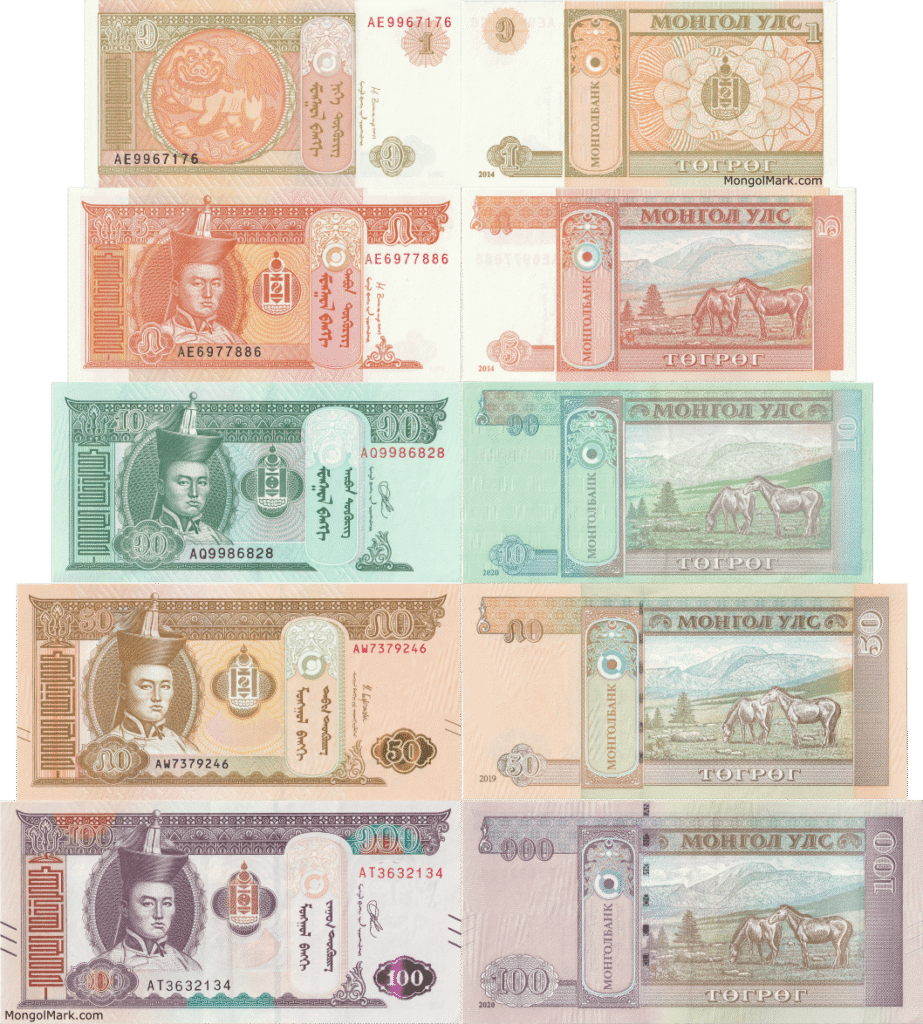 • 1993 онд 1, 5, 10, 20, 50, 100, 500, 1000 төгрөг