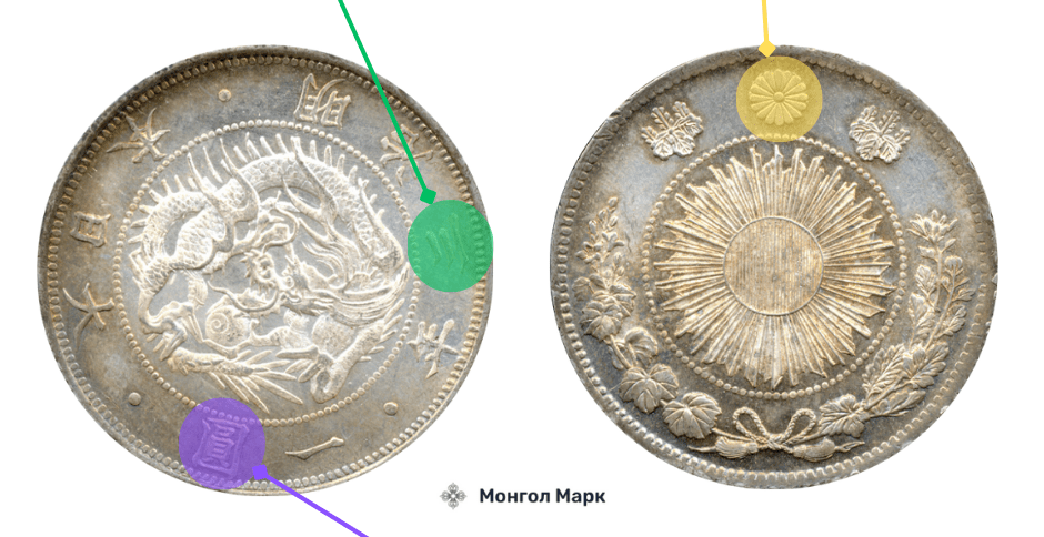 Зураг дээрх YuanShiKai 1 юань мөнгөн зоосыг ажиглавал: Ѳнгѳц хархад зүүл талын зоос нь жинхэнэ мэт харагдана гэтэл яг үнэндээ